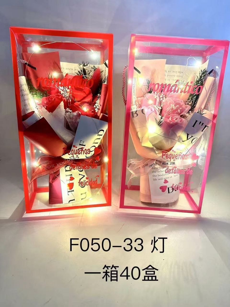 Caja de flores articificiales con luces cantidad