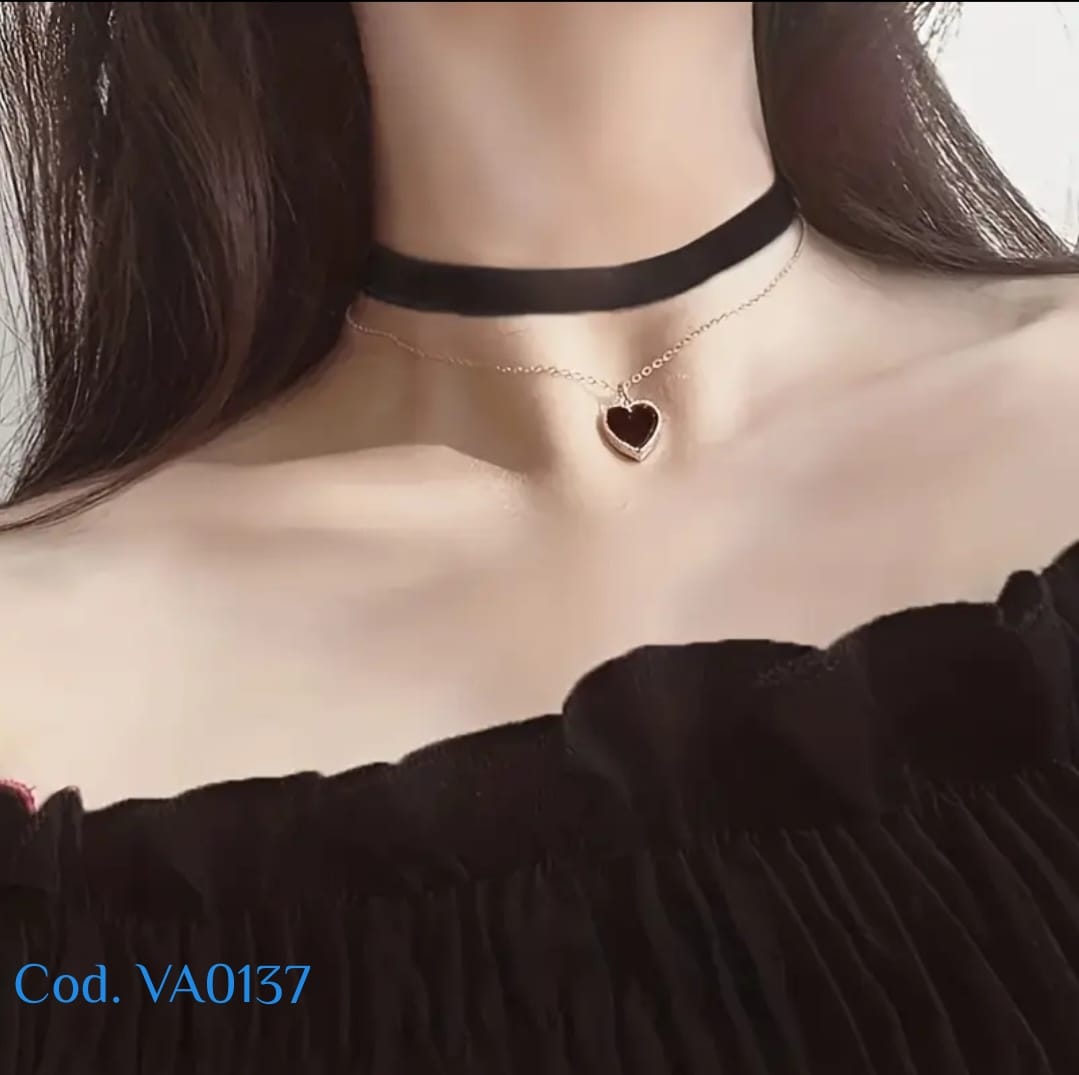 Collar de terciopelo con colgante de corazón estilo Vintage
