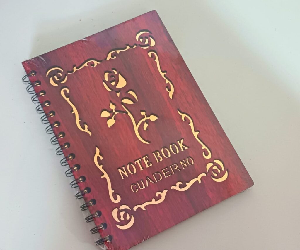 Agenda de 1 línea, pasta tallada en madera cantidad