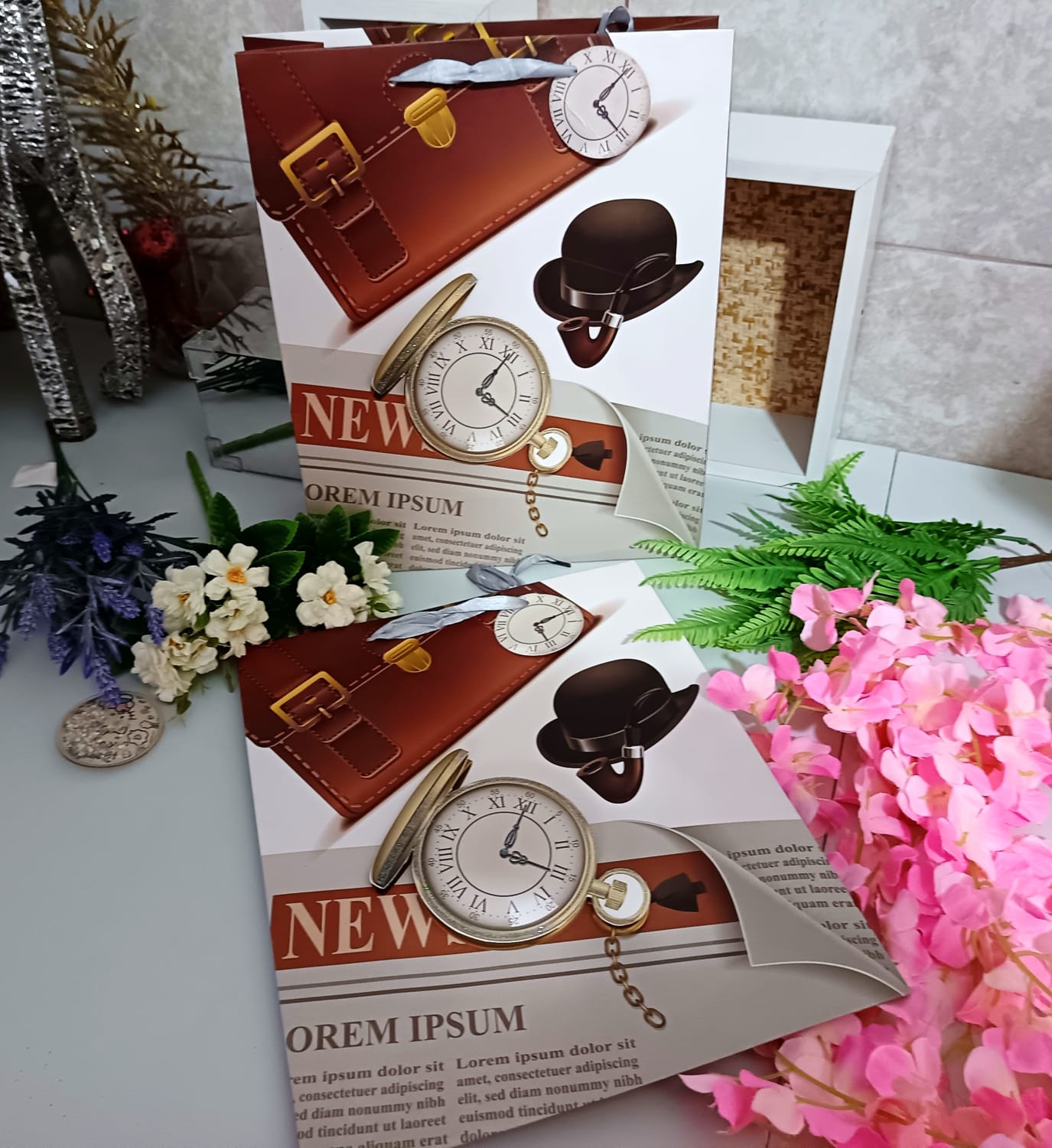 Funda regalo mediana con flores 26x32x10ccm