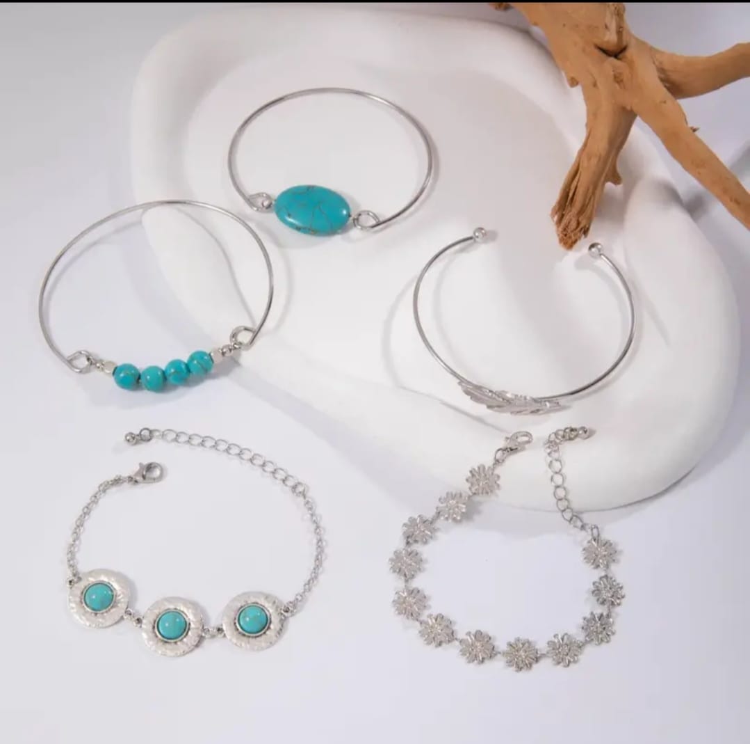 Set pulseras incrustada con turquesa estilo étnico cantidad